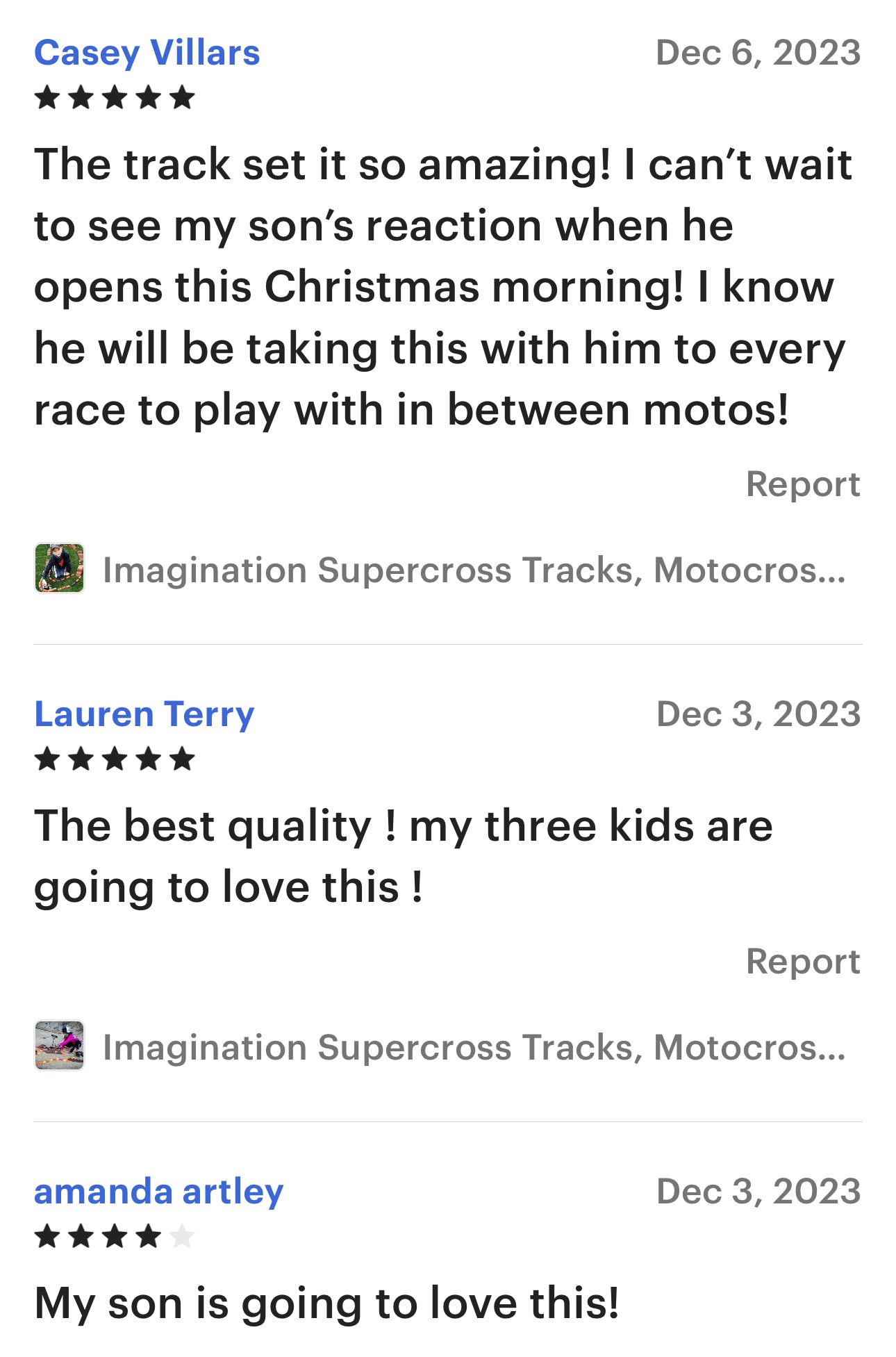 AMAZING!! The quality is remarkable. I love how big it is.. I didn't think it was going to be thay big, and let me tell ya. When I got it I wanted to play with it. My son loves it! He's been begging for a dirtbike track and I'm so glad this ship popped up on my Google search! I also got it a couple days ahead of schedule, just in time for Christmas! So incredibly happy with my purchase!! Thank you so much!!